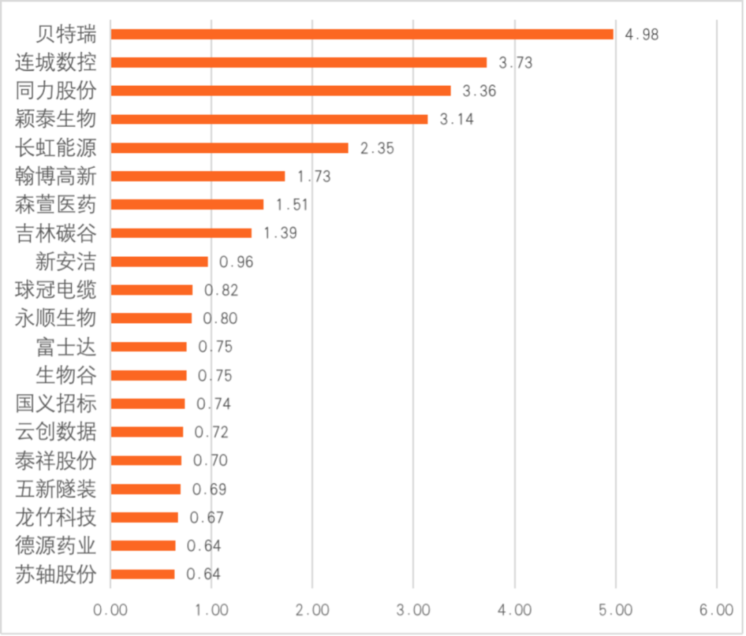 圖5 精選層2020年凈利潤前20名企業(yè)及數(shù)據(jù)(億元)