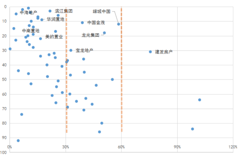 圖:2020年百?gòu)?qiáng)房企銷(xiāo)售增速和人力資本排名
