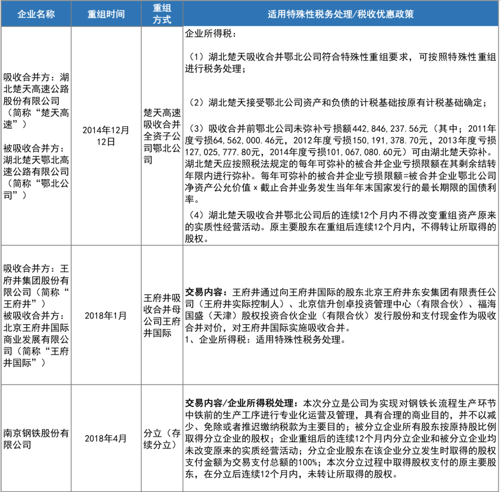 根據(jù)筆者檢索,自2018年以來,包括但不限于有以下境內(nèi)上市公司重組,適用了特殊性稅務處理: