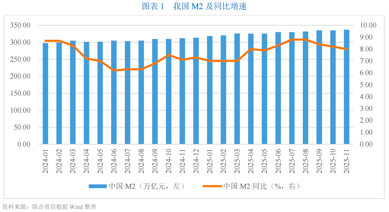 2025年前三季度,我國M2增速呈波動增長態勢,其在7月達到年內高點8.80%后,持續回落至2025年11月末的8.00%。全國社融同比增速維持相同的波動態勢,增速自7月后持續回落,11月末增速為8.50%。社會融資成本方面,2025年5月,5年期LPR下調10bp至3.50%;央行數據顯示,9月,企業新發放貸款加權平均利率約3.1%,較上年同期低40bp,個人住房新發放貸款利率3.1%,較上年同期低20bp,融資成本處于低位。