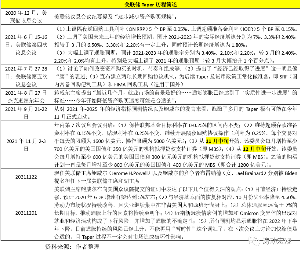 意味著2022年1月的縮減購債規(guī)模是11月和12月的兩倍,將完成Taper的時間由11月預(yù)期的2022年6月大幅提升至2022年3月。