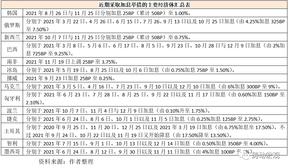 例如,2021年11月以來,已有韓國、新西蘭、巴西、南非、烏克蘭、匈牙利、波蘭、捷克、智利和墨西哥等經(jīng)濟(jì)選擇加息,既包括發(fā)展中國家,也包括韓國和新西蘭等發(fā)達(dá)經(jīng)濟(jì)體。