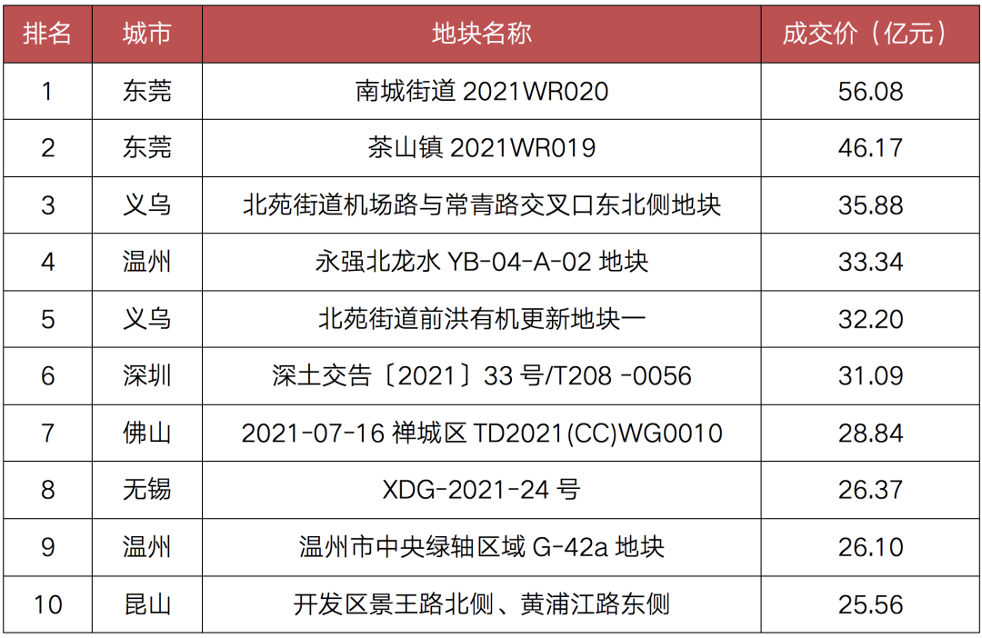 表:2021年8月成交土地總價(jià)排行榜