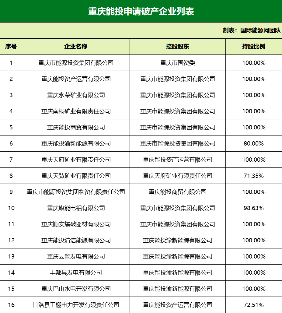 最近幾天, 重慶能源集團(tuán)等16家企業(yè)申請(qǐng)破產(chǎn)重整的消息刷屏了網(wǎng)絡(luò)。公開(kāi)資料顯示,除重慶能投外,其他15家公司均為重慶能投的控股子公司。