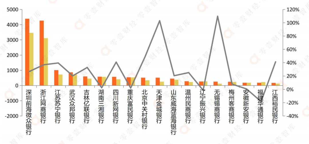1、18家民營銀行根據凈利潤規模,由高到低進行排序;