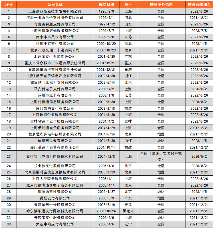 原標(biāo)題: 第三方支付機構(gòu)大全(2021)
