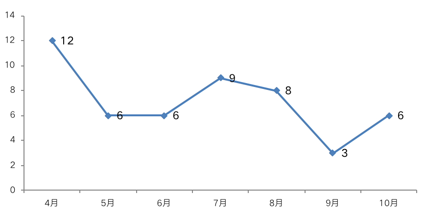 就樓板價TOP50地塊月度成交分布來看,在4月達到12幅的高峰值之后,5、6月高地價數量逐漸減少。
