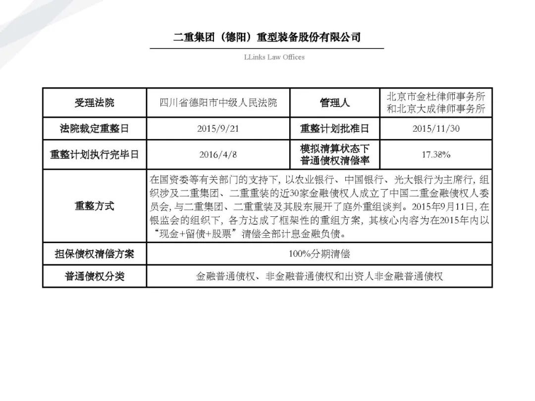 通過比較該等案例與此前的69個重整案例, 我們發現, 與目前破產領域“ 能破則破, 應破盡破 ”的指導原則相對應的是, 破產受理法院與破產管理人的專業水平與案件處理效率與此前相比都有了巨大飛躍, 不少上市公司通過執行重整計劃獲得了真正的新生, 《企業破產法》不再是被“束之高閣”的“國企改革法”, 而是真正成為了企業重獲新生的捷徑。今天我們特與大家分享該81個破產重整案例, 希望大家可以有所收獲。