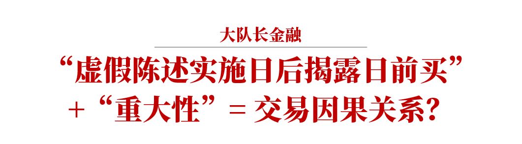 第一部分是是交易因果關系, 即虛假陳述直接影響了投資者購買證券的投資決定, 如果不存在虛假陳述, 就不會買入該等證券。