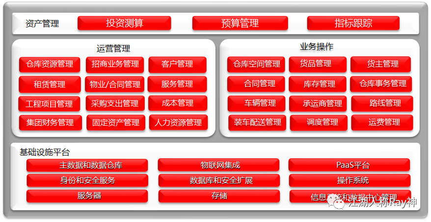 一是以提升資產(chǎn)收益為目標(biāo),搭建物流設(shè)施租賃運營及資產(chǎn)管理的支撐體系;二是聚焦倉配及供應(yīng)鏈服務(wù),建立面向物流產(chǎn)業(yè)鏈的倉儲管理、運輸管理及電子商務(wù)平臺。此外,借助物聯(lián)網(wǎng)及各類智能化設(shè)備手段,改善倉配環(huán)節(jié)的作業(yè)效率及物資管理能力。通過數(shù)字化平臺的建立,實現(xiàn)各類物流前端業(yè)務(wù)操作系統(tǒng)與收費、工程、租賃、財務(wù)等后端管理體系的集成,保障物流業(yè)務(wù)運營的有效開展。