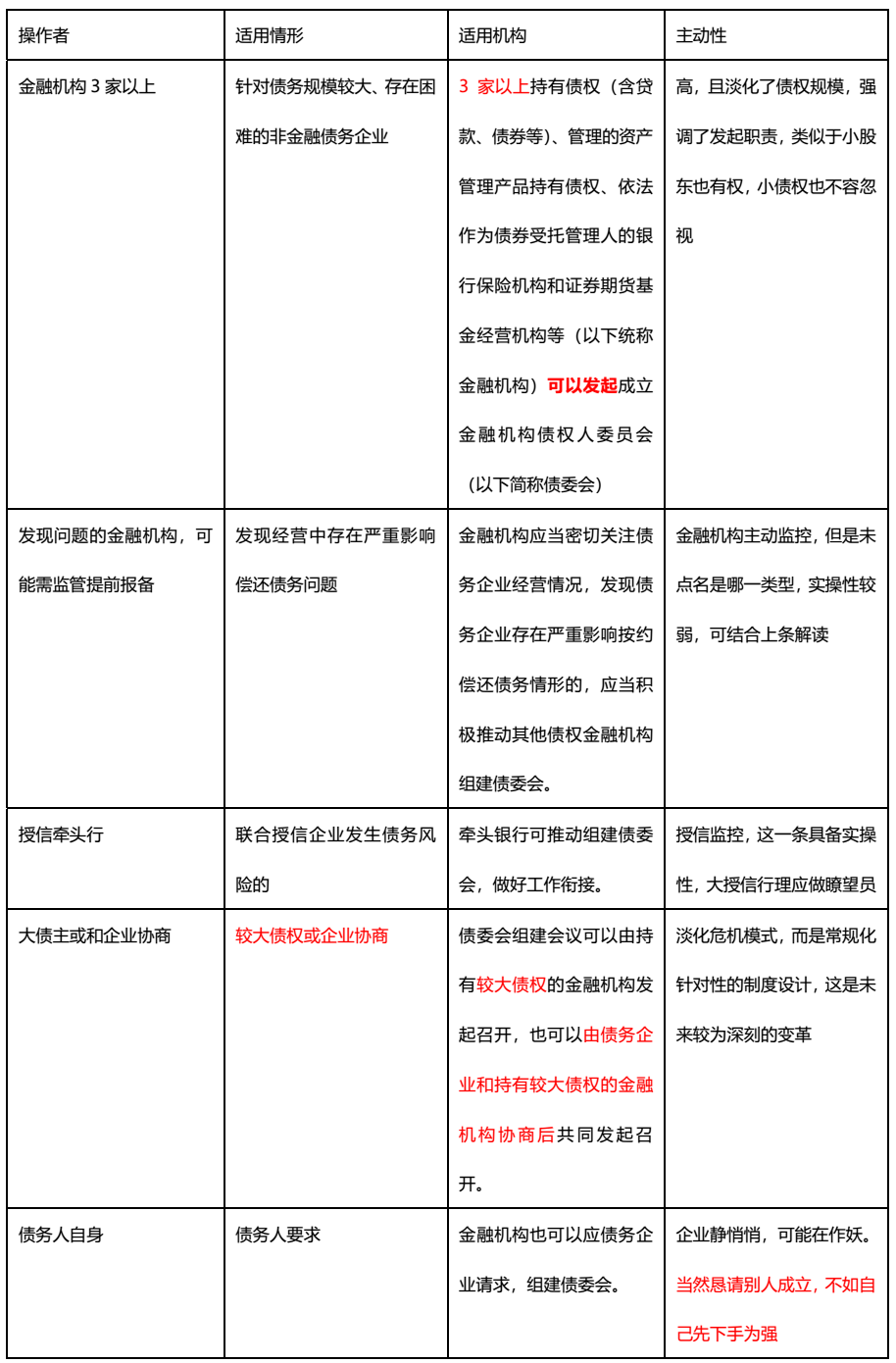 一句應當,應當,是風險防范的意識要求,也是監管對于粗放式金融管理的精細化進階要求,因而后續可能債委會更為時髦,不一定是此前的已經到難以為繼的狀態才設立。
