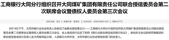 我們結合既有的現實來看,以大同煤礦的案例來看,此前整體債務較大,已經先行債委會,是一種防范風險的視角,整體實現聯合授信的職能,避免踩踏。