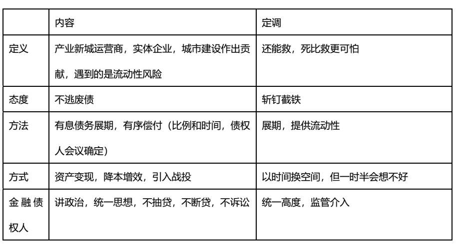 債委會,本意是想提供這樣的一個臺階,在債務幻滅或行將幻滅的時候,將損失最小化,社會影響最小化,保障一定程度的秩序,堅持按照市場化、法治化、公平公正、分類施策的原則進行的一種存在。