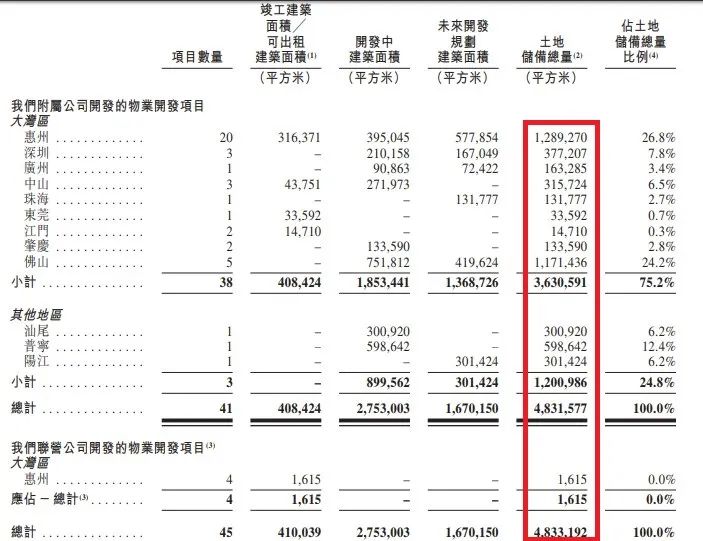 招股書介紹,主要在粵港澳大灣區(qū),截至8月末45個(gè)項(xiàng)目組合,覆蓋廣東省12個(gè)城市,其中4個(gè)項(xiàng)目通過(guò)一家聯(lián)營(yíng)公司開發(fā)。