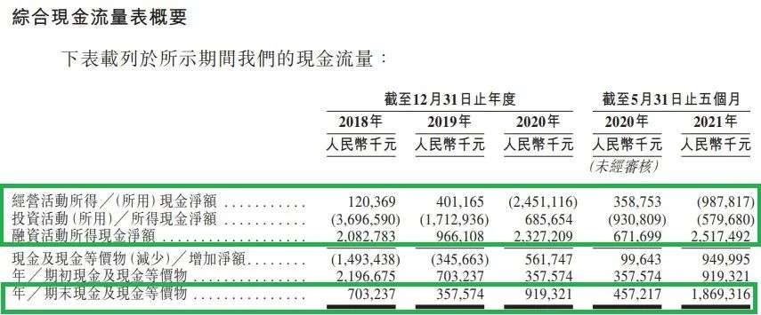 比如,招股書就說(shuō),2020年以及2021年前5個(gè)月,錄得負(fù)經(jīng)營(yíng)現(xiàn)金流量。