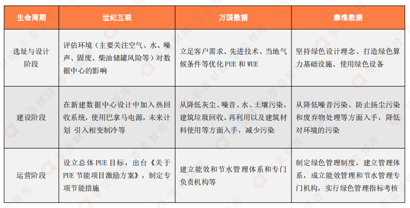 表:三家數(shù)據(jù)中心廠(chǎng)商的全生命周期綠色數(shù)據(jù)中心建設(shè)