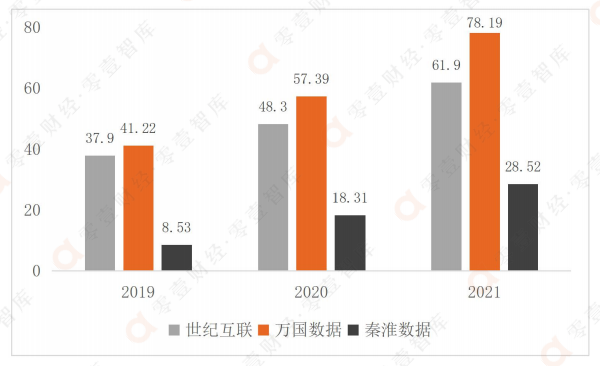 圖:三家數(shù)據(jù)中心廠(chǎng)商的營(yíng)業(yè)收入(單位:億元)
