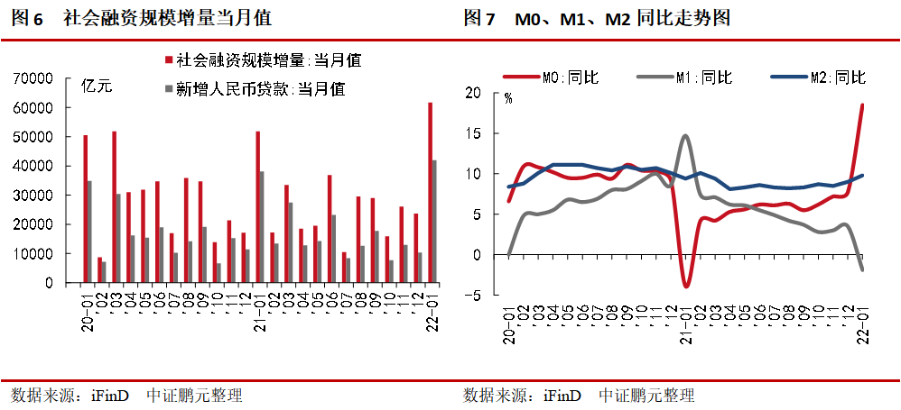 社融和信貸超預(yù)期,實(shí)現(xiàn)開(kāi)門(mén)紅,寬信用初步形成。1月社融增量為61,700億元,比2021、2020年同期多增9,816億元、1.12萬(wàn)億元。社融存量增速10.5%,前值10.3%,已連續(xù)三個(gè)月回升。新增信貸3.98萬(wàn)億,同比多增4,000億元,單月新增規(guī)模創(chuàng)歷史新高,企業(yè)短期貸款多增較多,信貸結(jié)構(gòu)出現(xiàn)分化。