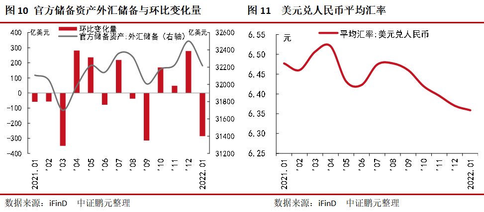 2月7日,國(guó)家外匯管理局?jǐn)?shù)據(jù)顯示,截至2022年1月末,我國(guó)外匯儲(chǔ)備規(guī)模為32,216億美元,較2021年末下降285億美元,降幅為0.88%。1月,美元兌人民幣平均匯率為6.36,連續(xù)6個(gè)月小幅回落。