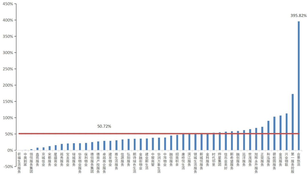 增值服務毛利率高于基礎物業服務毛利率,且社區增值服務的毛利率更高。其中,佳源服務基礎物業服務毛利率最高,達30.37%,濱江服務社區增值服務毛利率最高,為71.31%,建業新生活非業主增值服務毛利率最高,達49.64%。