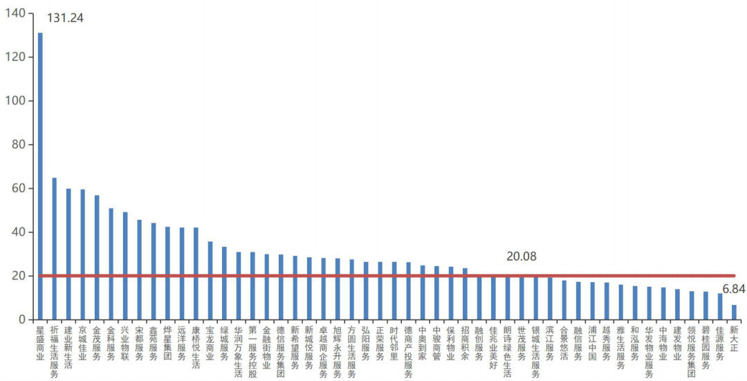 特發服務、華潤萬象生活和招商積余三家市盈率最高,分別為51.39倍、41.92倍和36.49倍。特發服務與華潤萬象生活市盈率也是少有的超過40倍的上市物企。