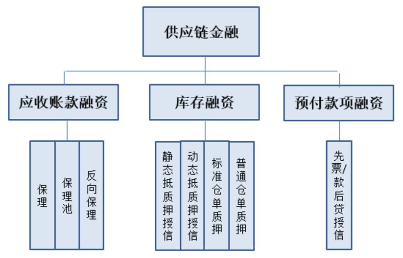我們知道企業(yè)的經(jīng)營(yíng)環(huán)節(jié),主要是采購(gòu)、生產(chǎn)和銷售環(huán)節(jié),在這些環(huán)節(jié)中就必然會(huì)有上下游企業(yè)之分。在整個(gè)鏈條中,因?yàn)橛械纳舷掠纹髽I(yè)資金緊張,從而導(dǎo)致供應(yīng)商供不上貨,經(jīng)銷商賣不出去庫(kù)存,從而形成大量的預(yù)付款或者應(yīng)收款,以及產(chǎn)品庫(kù)存,整個(gè)鏈條的轉(zhuǎn)動(dòng)變慢甚至停滯,影響到一些有一定市場(chǎng)地位的核心企業(yè)。那么圍繞這些大的核心企業(yè),根據(jù)整個(gè)鏈條的轉(zhuǎn)動(dòng)節(jié)點(diǎn),設(shè)計(jì)出一些金融解決方案,幫產(chǎn)業(yè)鏈上的企業(yè)紓困解難。大體來(lái)說(shuō)供應(yīng)鏈金融主要有以下幾種模式。