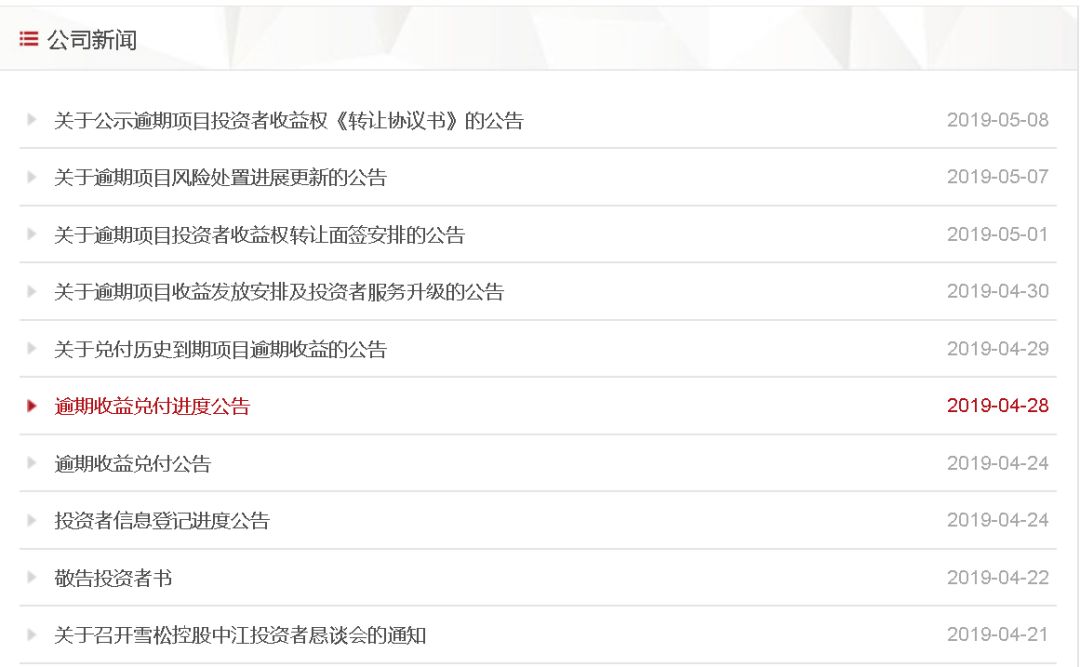 本次轉(zhuǎn)讓的標(biāo)的為違約項(xiàng)目的利息權(quán)利;轉(zhuǎn)讓后雪松控股將在7月22日之前按原合同約定收益率支付利息給投資者