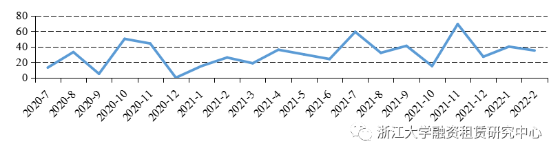 圖1融資租賃公司各月資產(chǎn)支持證券發(fā)行數(shù)量統(tǒng)計(jì)(支)