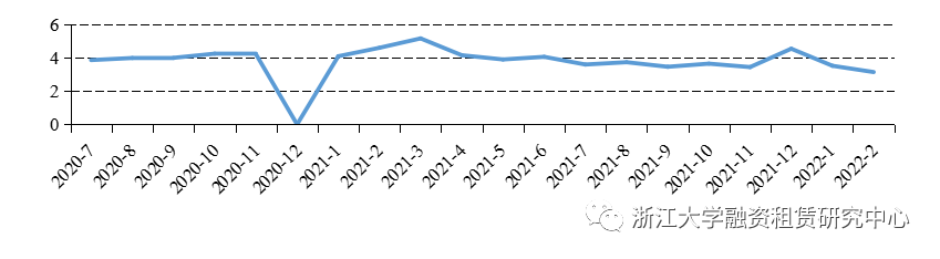 圖3融資租賃公司各月資產(chǎn)支持證券發(fā)行平均票面利率統(tǒng)計(jì)(%)