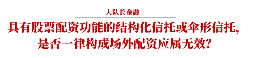 分析各相關(guān)案例最終判決情況,我們認(rèn)為,《九民紀(jì)要》第86條的規(guī)定針對(duì)的是狹義場(chǎng)外配資行為,即P2P公司或私募類配資公司利用互聯(lián)網(wǎng)開展的配資業(yè)務(wù)。信托公司開展的結(jié)構(gòu)化證券信托業(yè)務(wù)不直接等同于場(chǎng)外配資,不能僅以結(jié)構(gòu)化信托或傘形信托具有配資功能并投資于證券市場(chǎng),就認(rèn)定其為場(chǎng)外配資而應(yīng)當(dāng)無效。