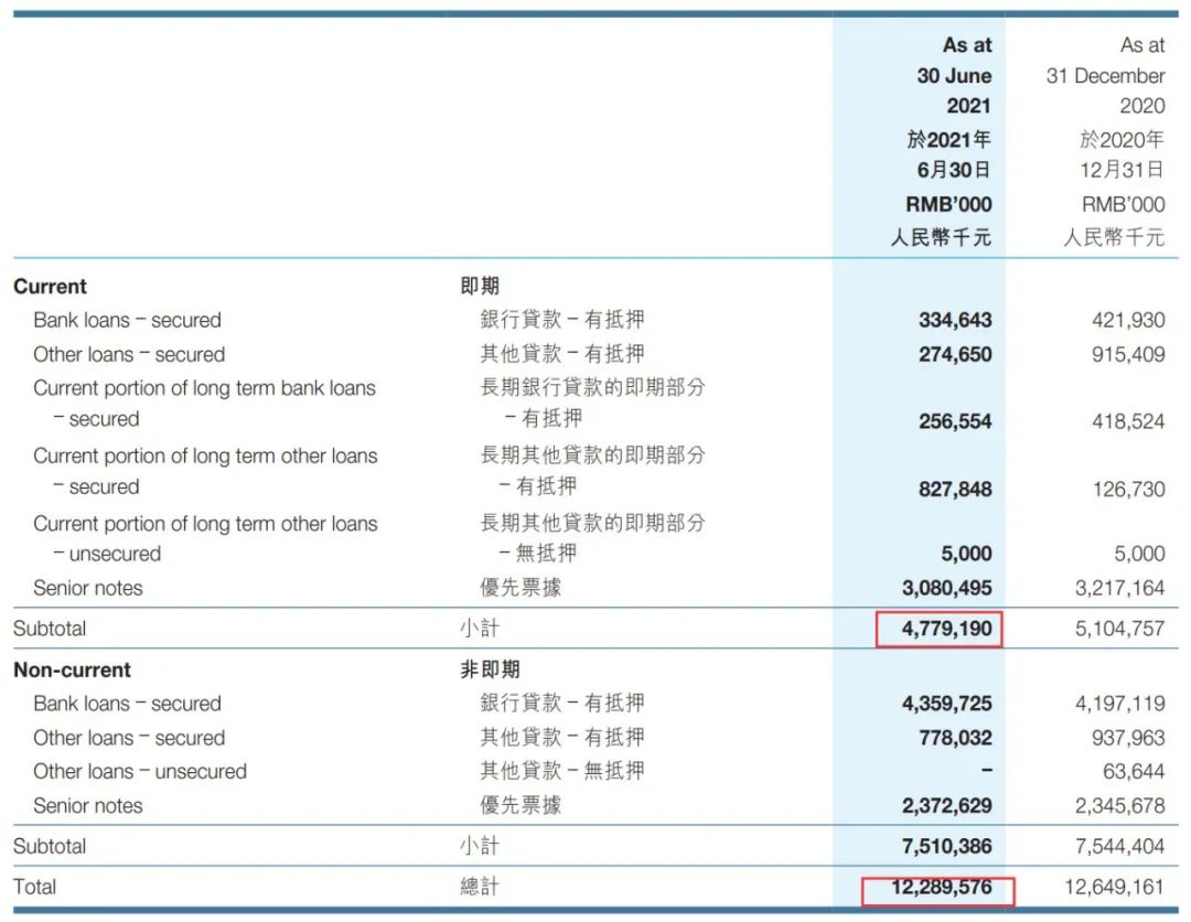 最新披露的2021年中報里,截至2021年6月30日,大發(fā)地產總債項約為122.90億元,包括計息銀行及其他借貸及優(yōu)先票據(jù)。2020年末這一數(shù)據(jù)為126.49億元,今年上半年略少了些。