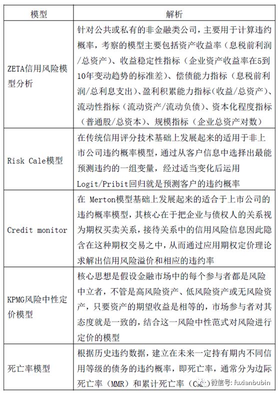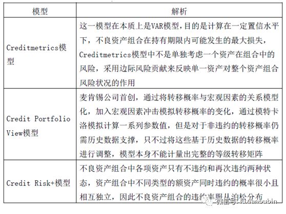 對于金融業務的開展而言,還要考慮信用風險組合模型,根據實踐,目前采用的模型主要包括以下表所示: