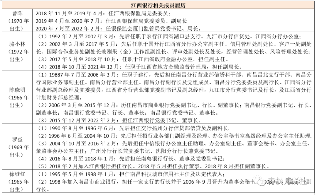 (三)江西銀行董事長與行長基本鎖定