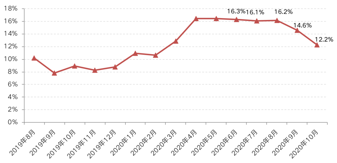 整體來看,自10月以來土地熱度在“三條紅線”影響下明顯降溫,溢價率僅有12.2%,創下二季度以來新低,11月,市場熱度依舊保持低位。