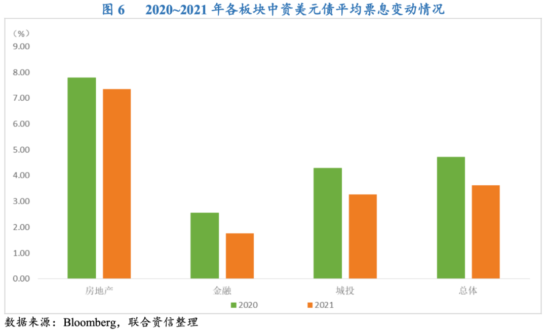 各板塊中資美元債發行成本全面下行,城投美元債融資成本降幅最大