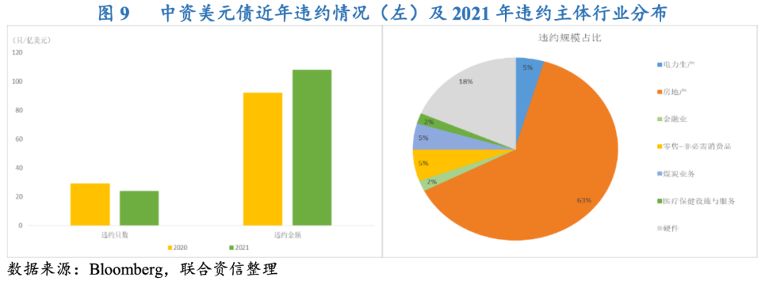 2021年中資美元債違約規模明顯上升,信用風險事件主要集中在房地產行業