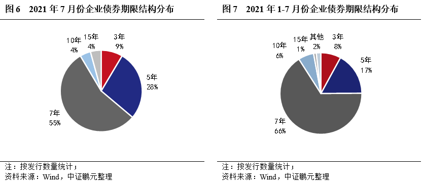 3. 7年期為企業(yè)債券主力期限品種,3年期和5年期品種占比環(huán)比上升