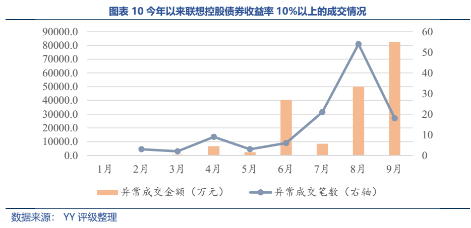 聯想控股也是境內發債主體,其去年下半年以來YY隱含上升趨勢明顯,其中一部分是企業自身資質的波動引致(大額海外并購風險、債務累積風險等),一部分是受滴滴被查、APP下架事件拖累, 9月以來隨著滴滴輿論熱度冷卻,聯想的估值有所回落。