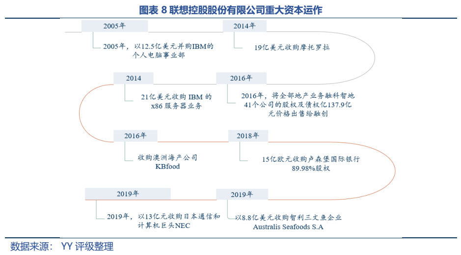 在去年11月,YY評級也在《聯想:貿工技時代的謝幕》一文中對聯想控股的情況進行過梳理,總體來說,一方面是個別管理層人員掌握了企業的控制權造成短視行為,企業專注短期的利潤,自然不會專注道阻且長的研發之路,另一方面是多元化戰略下企業持續海外并購,使聯想未能將主要精力與資源聚焦于核心技術的突破。