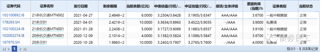 余杭交通的存續(xù)債券金額為35億元,存續(xù)債券5只,存續(xù)債券產(chǎn)品包括中期票據(jù)和私募債,未發(fā)行過(guò)企業(yè)債券。