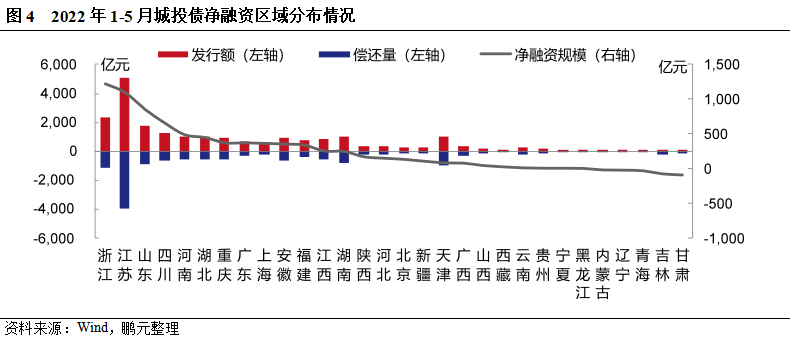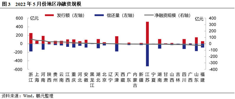 3. 5月份全國各地城投債融資以凈償還為主,共16省份為凈償還