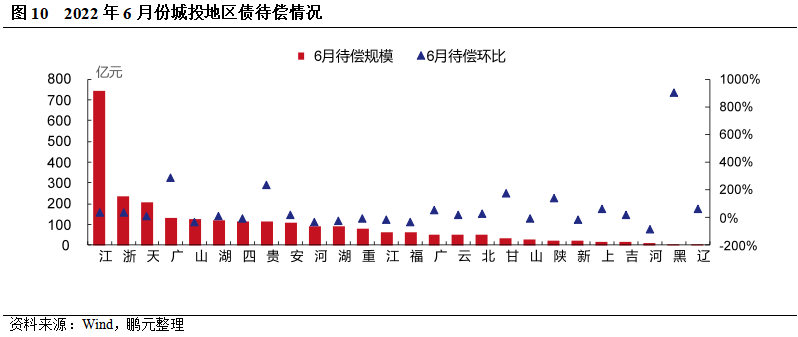 8. 6月份全國城投債待償規(guī)模環(huán)比上升,各地償債壓力尚可