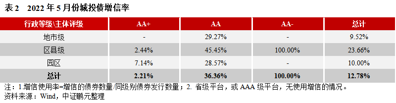 5. 5月城投債增信使用率下降,AA級園區(qū)主體增信使用率下降明顯
