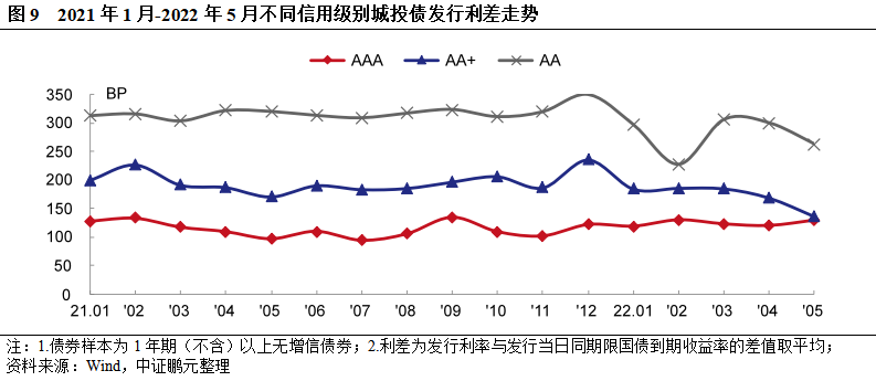 6. 5月份長期限城投債發(fā)行利率下行、AA+和AA級平臺利差收窄