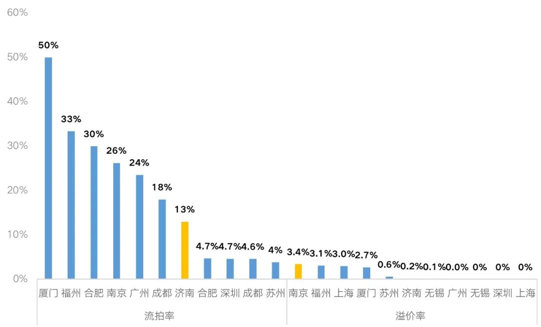 圖:已完成第三輪集中土拍城市的溢價率和流拍率對比