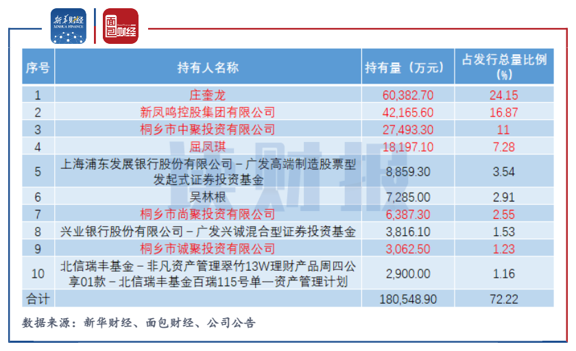 值得一提的是,早在2018年,公司在發(fā)行上一支可轉債(以下簡稱“新鳳轉債”)時莊奎龍、恒聚投資、中聚投資共計配售730萬張。在2018年7月23日至9月21日期間莊奎龍、恒聚投資、中聚投資合計減持新鳳轉債430.6萬張,按照期間交易均價102.89元/張估算,獲利近1244萬元。