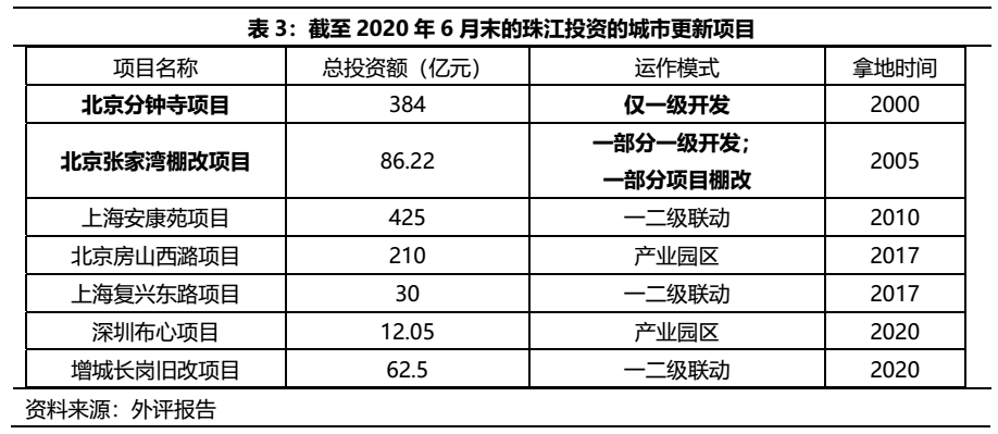 截至2020年6月末,珠江披露的城市更新項(xiàng)目7個(gè),其中僅北京分鐘寺項(xiàng)目和張家灣是僅一級(jí)開(kāi)發(fā),其余均涉及二級(jí)建設(shè),張家灣項(xiàng)目上市地塊已經(jīng)收入北京首旅的囊中。從珠江剩余的城市更新儲(chǔ)備來(lái)看,似乎珠江和合生之間的“一二級(jí)聯(lián)動(dòng)”可能性較大的項(xiàng)目限于分鐘寺。
