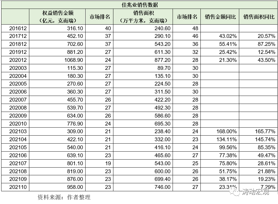 例如,2020年全年,佳兆業集團的權益銷售金額和銷售面積分別為1068.90億元和877.20萬平方米,分別位列市場第24位和第28位。再比如,今年1-10月,佳兆業集團的權益銷售金額和銷售面積分別為958億元和746萬平方米,位居全國地產企業第23位和第27位,同比分別增長23.31%和7.29%。