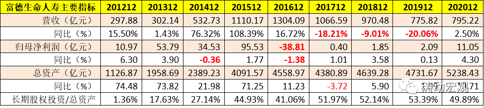 3、不過目前富德生命人壽自身也是困難重重。2017-2020年三年期間,營收同比分別下降18.21%、9.01%和20.06%。并且,在富德生命人壽的資產構成中,長期股權投資占比達到50%左右,可以其實質上更像是一家控股集團。