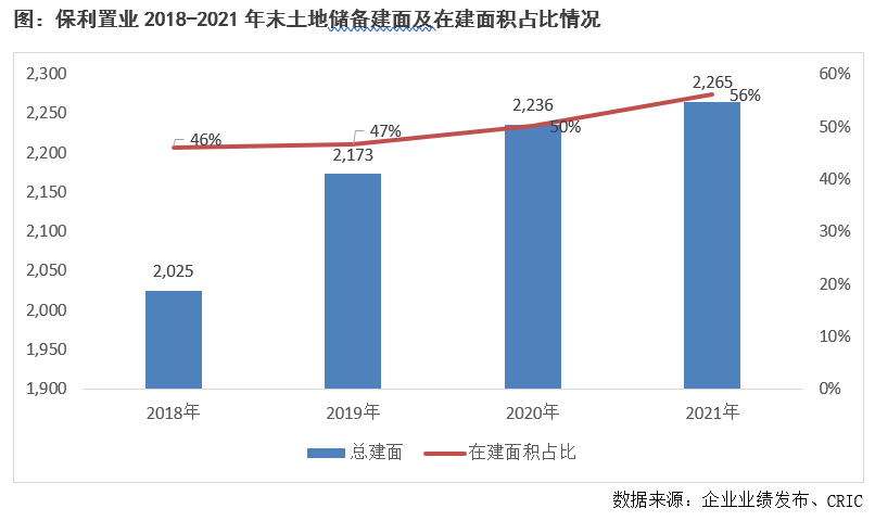 截至2021年年末,保利置業土地儲備2265萬平方米,同比增長1.3%,其中在建面積1269萬平方米,占比達到56%,同比增長6個百分點,保利置業的項目開發速度有所加快。根據保利置業當前的銷售走勢來看,土地開發周期為5-7年,土地儲備充足,將是保利置業2025年千億目標達成的重要保障。